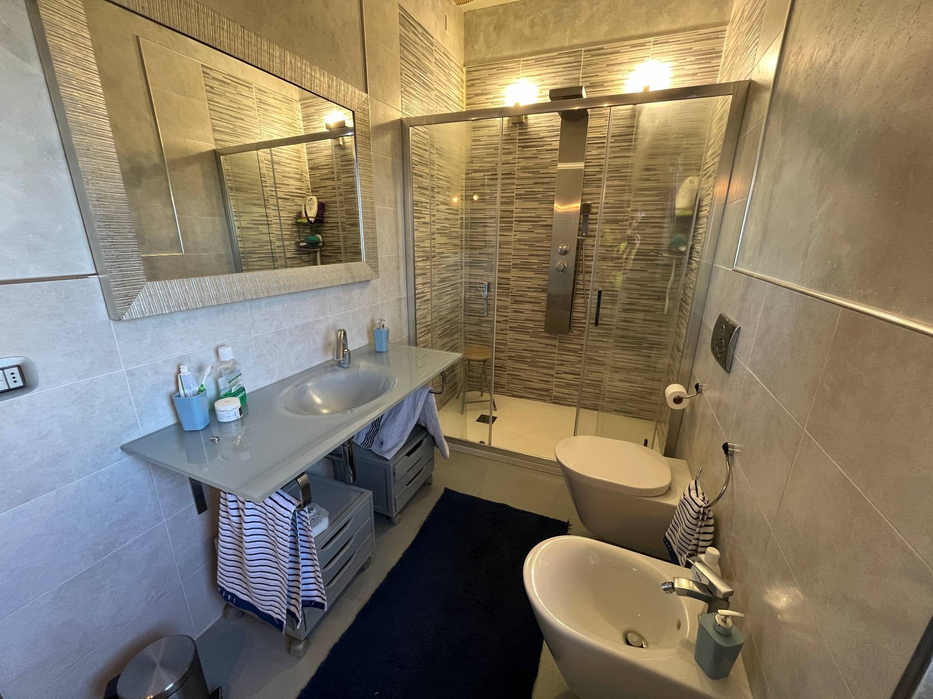 -appartamento al primo piano con cucina abitabile, sala, due camere matrimoniali, doppi servizi finestrati con doccia, ripostiglio/lavanderia, due balconi. € 420.000.