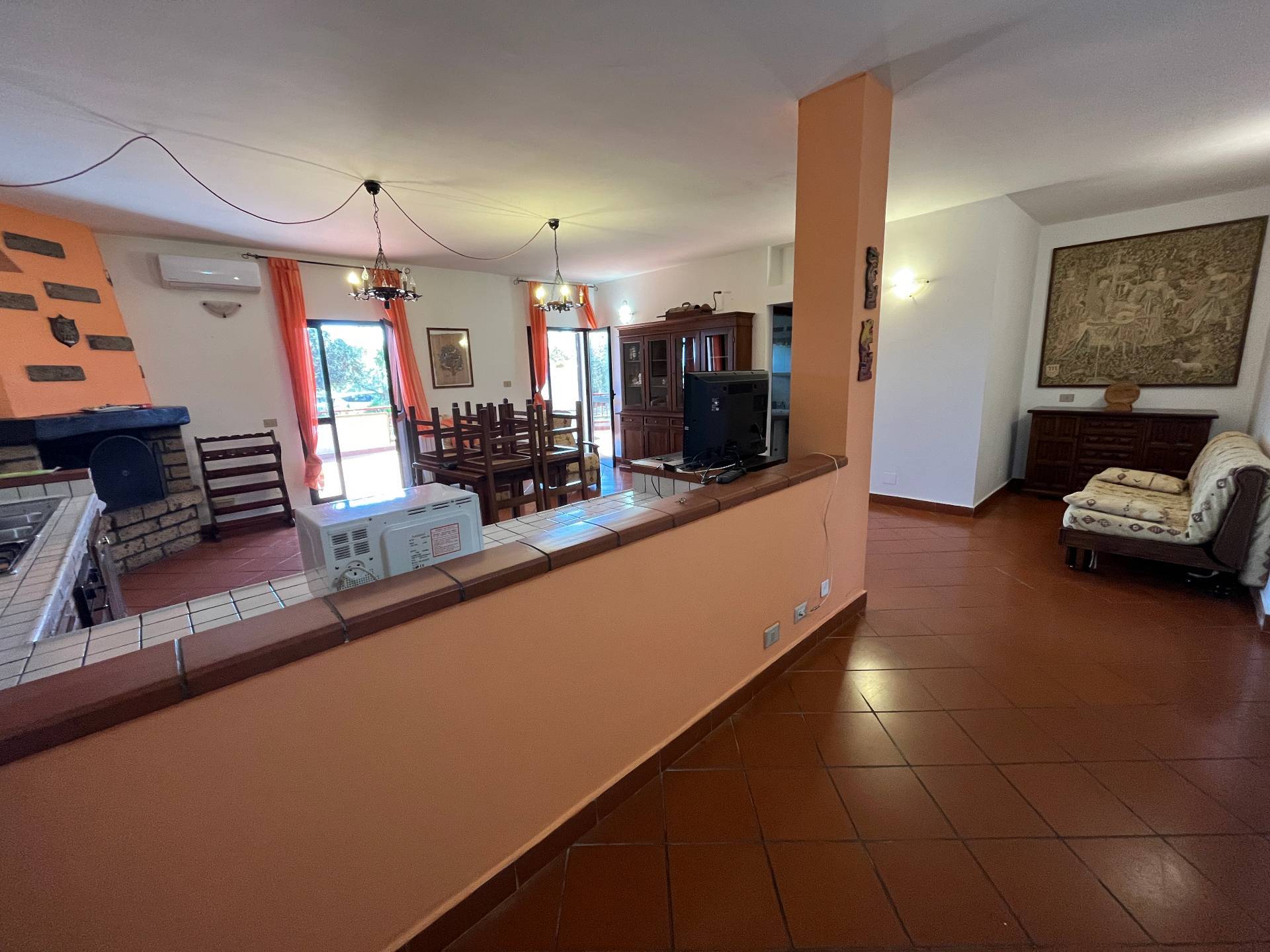 -appartamento al piano rialzato composto da soggiorno con angolo cottura e camino, bagno finestrato con doccia, ripostiglio/lavanderia, due camere da letto matrimoniali, terrazza, giardino;